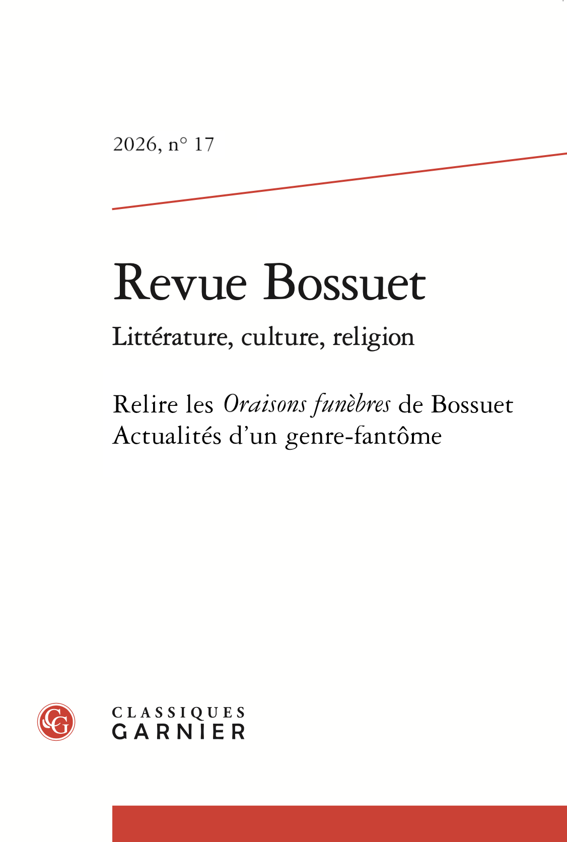 Ce numéro à paraître de la Revue Bossuet est consacré aux Oraisons funèbres de Bossuet. Son dossier thématique contient les actes de la journée d’étude « Relire les oraisons funèbres de Bossuet : actualités d’un genre-fantôme », organisée en décembre 2025 par les Amis de Bossuet. Celles et ceux qui souhaiteraient le recevoir dès sa parution à tarif préférentiel (19€, ou 9€ pour les moins de 25 ans) peuvent dès à présent adhérer à l’association des Amis de Bossuet grâce au formulaire dédié qui figure sur cette page.